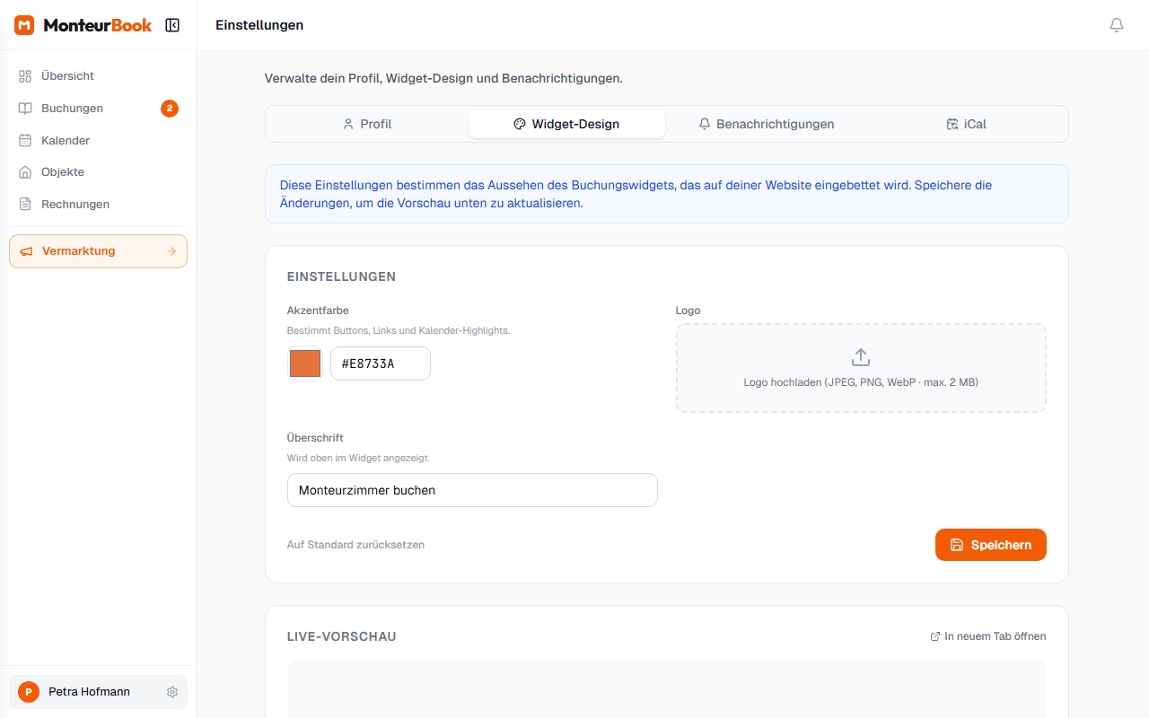 Das MonteurBook-Widget lässt sich optisch an deine Website anpassen. So wirkt es wie ein natürlicher Teil deiner Seite – nicht wie ein fremdes Element.